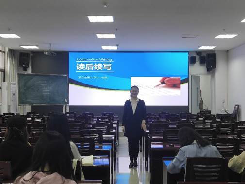 张岚老师是外院的优秀员工,她用自己丰富的学识和教学经验呈现了一节生动的“读后续写”英语课。这节课主要有四个教学环节:理解阅读材料,讲授续写要求,员工当堂写作和分享讲解习作。在第一个环节,张老师引导员工深入分析阅读材料的文体结构,叙述方式和主题内涵。在第二个环节,张老师从记叙文六要素入手,帮助员工梳理续写的思路。在讲述续写基本策略和原则时,她特别强调培养员工们的发散性思维:“高中生最重要的是思维的培养”。第三个环节是员工10分钟的自由写作,然后课堂进入第四个展示环节。与传统的老师讲解范文的教学模式不同的是,她请员工到讲台上讲解自己作文的结构和用词,并进行自我评价。四十分钟很快就过去了,张老师以缜密的教学设计,娴熟的教学技巧,创造了良好的课堂氛围,高质量地实现了教学目标。