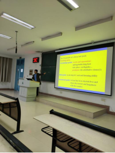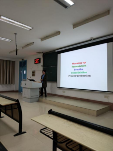 在教学活动设计方面,邓老师用自己以前的教学案例向大家介绍了完整的英语课堂应该包括的内容:warming up, presentation, practice, consolidation, production。邓老师以高中教学难点“虚拟语气”为例,向大家介绍如何用更生动有趣的方法学习让员工掌握语法。邓老师指出,教师需要用更直观可感受的典型例子来代替书中那些可能过时的例子,以一种更加生动活泼教学形式与员工互动,在例子中融入语法,让例子服务教学,让员工在不知不觉中地将知识点铭记,最后水到渠成,自然而然地将所需传授知识引出来,达到事半功倍的效果。