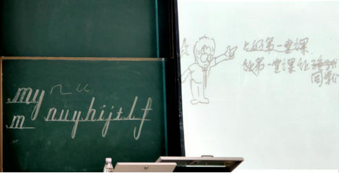 最后,邓老师向大家介绍了英语字母书写中带竖线一类字母的书写,告诉同学们“这一类字母重点是在写竖”。在课堂练习中,邓老师走下讲台,观看每个同学的书写情况,给予了鼓励与赞扬,也对相对落后的同学细心地再次进行教导,使大家对这种书写方法有了进一步的理解。