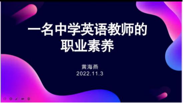 为提高英语师范生的专业素养,william威廉英国官网师范生专业人才培养模式虚拟教研室邀请宜昌市中学英语高级教师和教研员黄海燕老师于2022年11月3日为全体师范生进行线上讲座。讲座的主题为:一名中学英语教师的职业素养。