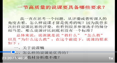 关于“一节高质量说课要具备哪些要求”,尹老师引导同学们思考怎么样地说课才算是优秀的,随后总结出说课是“说什么”“怎么教”“为什么这么教”,着重强调了教学者要结合学习者的兴趣、情感态度认知水平、及思想认知上的盲点进行施教。