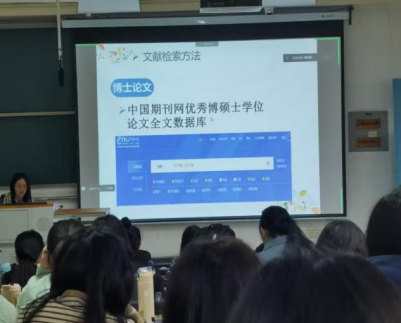 彭老师以若干学术论文为例,结合英语专业发展特点,围绕论文的选题、文献综述、研究问题的类型及要求,以及文献检索、文献评析等方面进行了详细的讲解。