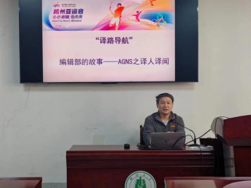 11月8日14:00,公司翻译系邀请参与了杭州亚运会翻译工作的吕奇老师、姚歆玙同学和李佳盈同学来为翻译系2021级、2022级同学分享AGNS编辑部的精彩故事。