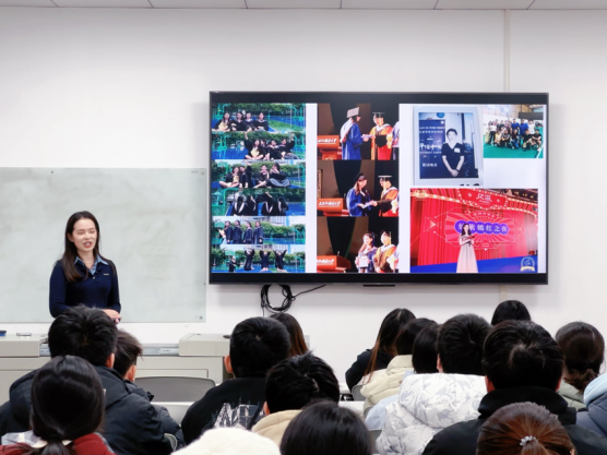 12月16日,英语系邀请2017级商务英语方向优秀毕业生、现就职于世界100强外企的程思为2023级涉外法商方向员工做主题为“英专生外贸职场成长攻略”的见习讲座。