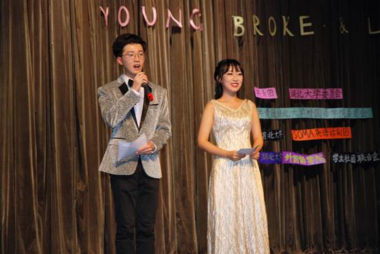 晚会共有四个节目,分别是由william威廉英国官网各院教师子女友情出演的公益儿童短剧《手捧空花盆的孩子》、SOMA英语话剧团出品的话剧《窈窕淑女》、《蒂凡尼的早餐》和阳逻分会带来的《歌舞青春》。首先出场的是孩子们参演的《手捧空花盆的孩子》,简单的剧情衬托出孩子的稚嫩和无邪,台下的观众无不为孩童的纯真而感动。《窈窕淑女》经典重现,演员们精湛的演技,恰到好处的英式发音,完整精心的台词和配乐深入人心。台下观众的情绪都跟着剧情跌宕起伏,掌声雷鸣。《蒂凡尼的早餐》中演员们深厚的台词功底,巧妙的道具安排和娴熟的舞台风范使得整个话剧生动精彩。演员们感情充沛,每个观众都融入其中,身临其境。《歌舞青春》展现了青春的活力与激情。年轻的歌声,义无反顾的热情弥漫整个舞台。演员们精致的美式发音,别出心裁的歌、舞、表演结合的形式都在观众心中留下了深刻的印象。晚会最后,主持人道出:“青春是一场晚宴,我邀你一同赴约”。