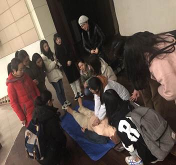 讲座结束后,部分同学还与医护人员一起模拟演练心肺复苏过程,现场实践学习紧急救护知识。