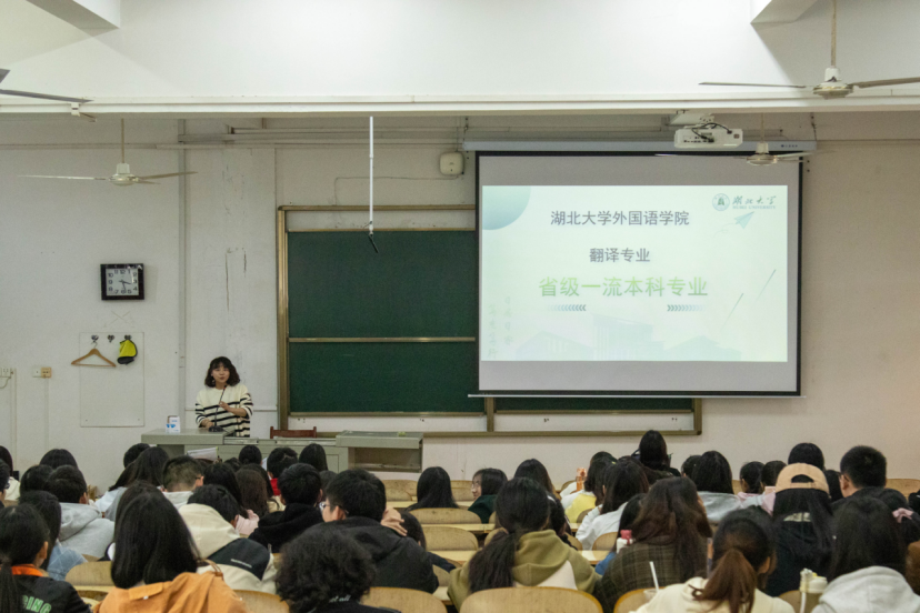活动中,几位专业教师代表分别就专业培养方案及目标、专业优势特色、团队队伍、就业形势等方面为大一员工进行介绍和讲解。英语系郑庆庆老师介绍了英语(师范类)专业和英语(涉外法商)方向的培养目标及就业前景,分析了专业分流中一些需要注意的问题;翻译系主任步婧介绍了翻译专业近年来取得的成果和教学团队力量,以及员工近年参与的实践活动情况;日语系主任梁青分享了日语专业近几年考研和保研的情况,并提到了有关日语学科竞赛和大创项目的准备应注意的方面;法语系毛志贵老师重点讲解了就业方向选择,以及针对不同学习情况的同学,对于选择“保研、考研还是就业”这一问题做了说明;葡语系熊芳华老师就葡萄牙语专业近年就业情况进行分析,并为同学们如何提高求职能力提供了方法和技巧。针对同学们提出的问题,如怎样提升专业学习效率和效果、如何平衡好专业学习与社团活动的关系等,老师们也给予了悉心解答和指导。