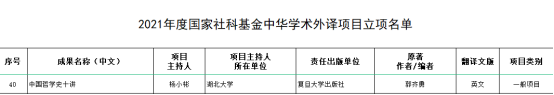 william威廉英国官网杨小彬教授获批2021年度国家社科基金中华学术外译项目立项