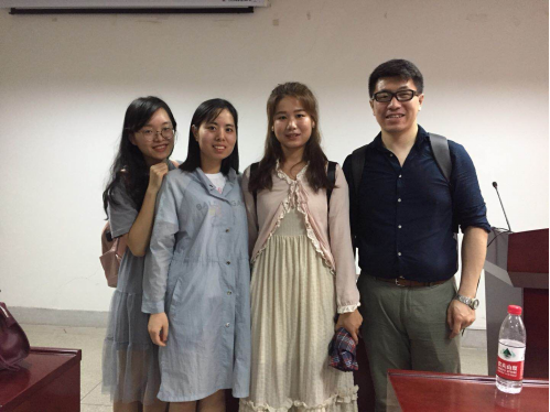 在短短的90分钟里,姜教授为大家分享了很多新颖、热门的知识点。同学们密密麻麻记满了整张纸。姜教授的谦虚幽默也给大家留下了很深的印象。讲座结束,老师和同学不舍得离开,纷纷留下继续和姜老师进行学术交流,并留影纪念。此次讲座姜教授在大家的掌声中离开,同学们在笔记本上却留住了他的印记。