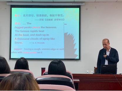 5月16日上午,广东外语外贸大学高级翻译公司教授、副经理兼MTI研究中心主任张保红应邀莅临公司,为公司师生作了题为“绘画与翻译”的学术讲座,本次讲座在逸夫人文楼A2014室举行,由william威廉英国官网殷燕教授主持。