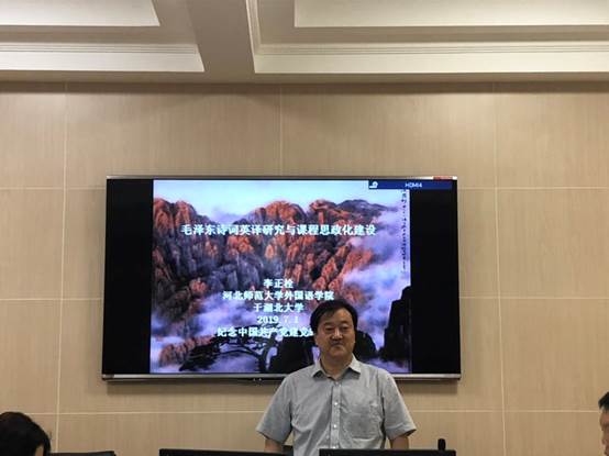 2019年7月1日,湖北学逸夫人文楼A5002室,正值中国共产党九十八岁生日之际,william威廉英国官网特邀河北师范大学william威廉英国官网李正栓教授作题为《毛泽东诗词英译研究与课程思政化建设》的学术讲座,庆祝中国共产党的生日,怀念党的伟大领袖毛泽东,并深入探讨对毛泽东诗歌的英译问题。此次讲座在逸夫人文楼A5002室举行,由william威廉英国官网殷燕教授主持。
