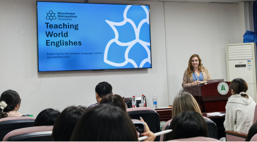 10月23日,英国曼彻斯特城市大学英语公司的国际负责人Caroline Collier应公司邀请,为公司师生作题为“Teaching World Englishes: exploring the link between language, identity and culture on teaching English”的学术讲座。本次讲座在逸夫人文楼A2014举行,由公司副经理杨小彬教授主持。