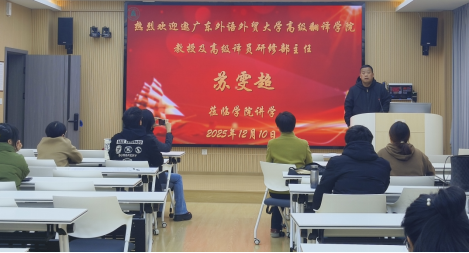 12月10日,广东外语外贸大学苏雯超教授应公司邀请,为公司师生作题为“人工智能时代的认知口译研究”的学术讲座。本次讲座在逸夫人文楼A3014举行,由翻译与跨文化传播研究所所长韩晓龙博士主持。