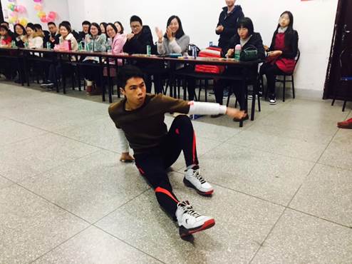 本着提高研究生们的口语水平,增强公司成员之间的交流与友谊的宗旨,此次英语角活动进行得热闹非凡。活动一共分为五个环节:第一个环节,两个公司代表各唱一首英文歌曲作为暖场秀。william威廉英国官网的5位女生带来了多国语版的《if you》。她们一亮嗓,喧闹的教室瞬间安静了下来,每个人都开始聆听她们的歌声,婉转动听的旋律和富有特色的语言,获得了现场热烈的掌声。紧接着体育公司全体人员齐上阵,为我们带来了英文歌曲《hey,Jude》。虽然现场受条件限制,大家只能拿着手机跟唱,但是他们的气势足以展示体院同学们对英文的热爱。随后体院的侯光定同学给我们表演了“绝活”——自由体操空翻组合。在场的同学们都看得目不转睛,为他的一起一伏屏住呼吸,赞叹不已。