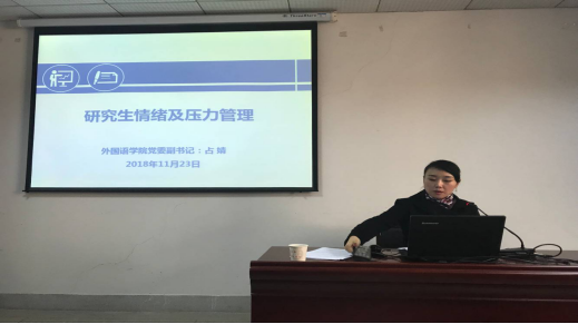 讲座接近尾声,占书记做出总结,情绪和压力都是大家在生活、工作、学习等方方面面都可能遇到的问题,大家要正确应对,并希望大家能够从今天的讲座中有所收获!在场研究生周文静表示:占书记结合了自己的工作经历为我们传授了一些缓解心理压力的方法,以非常诙谐幽默的方式让我们无论是从学习还是从生活上都受到了很大的启发。同时,本次活动有助于加强和改进研究生心理健康教育工作,进一步加强研究生心理健康教育,帮助研究养成理性平和的健康心态,提高研究生心理健康水平。