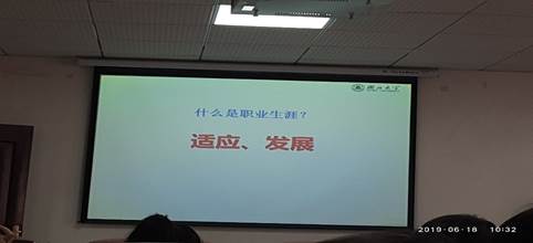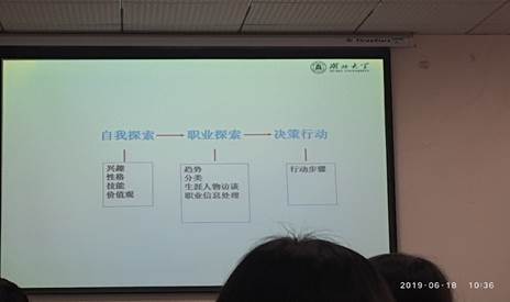 “那么我们该如何做自己的职业规划呢?”张老师一个问题引回到了今天的主题上面。“我们也需要一步一步的做好自己的规划,并且一步一步的去实践他”。张老师把“职业规划”分成了三个部分进行详细讲解:首先,适应自己,第二,适应环境,第三,培养技能。
