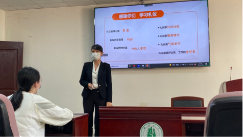 占婧副书记则给大家着重介绍了面试技巧和面试礼仪。她强调第一印象的重要性,全面细致地给同学们介绍了仪容、仪态、仪表三方面的标准和要求,并对面试中可能出现的难题提出处理方法。占婧老师还从自己的求职经验中出发,鼓励同学们从摸爬滚打中吸取经验,找到自己喜欢、家人满意的工作。