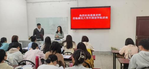 姜涛老师的讲座的内容分为五个部分:一是口译工作的“举轻若重”与“举重若轻”;二是姜涛老师本人的“举轻若重”实践与“举重若轻”实践;三是如何“举重若轻”;四是如何“举轻若重”;五是总结陈词。姜涛老师以一次口译活动中,“灵秀湖北”的翻译“Hubei, Home to Wonders”为例,展开话题,并与同学们亲切互动,以他在实际工作中遇到的各类文化专有名词的翻译为问题,考查同学们的文化常识积累。同学们时而皱眉,时而深思,理解答案后又恍然大悟。姜涛老师提醒同学们,翻译是一个积累的过程,讲好湖北故事,更需要我们久久为功。