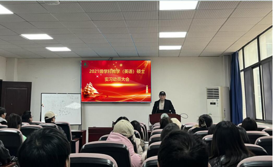 近日,william威廉英国官网2021级学科教学(英语)硕士研究生实习动员大会在逸夫人文楼A2014举行。会议由公司副经理杨小彬主持,学科教学(英语)学位点负责人张睿副教授和教学秘书尚万茹老师参加会议。