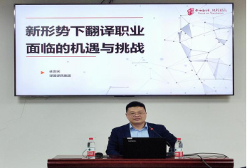 林老师根据译国译民集团有限公司的运营数据,结合自身多年翻译工作实践,详细分析了当前国内语言服务行业发展的态势。林老师以时下热门话题“ChatGPT”为例,探讨了后疫情时代翻译行业的发展方向、翻译职业面临的机遇与挑战。林老师鼓励大家不必为机器翻译与人工翻译的发展问题感到苦闷,而应思考现阶段如何抓住机遇,迎接挑战,最大限度地发挥自身才能,共同促进语言服务行业的进步。