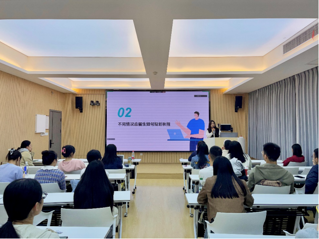 11月5日晚18:30,就业指导中心祝晓静老师应公司邀请,为同学们开展了题为“2025届秋招观察及秋招务实备战技巧”的就业指导讲座。本次讲座在逸夫人文楼 A3014举行,由辅导员孙媛媛主持。
