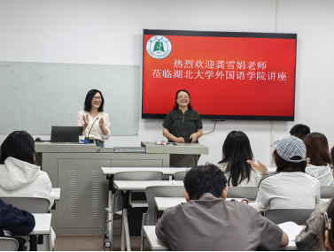 9月24日,武汉广播电视台新媒体外语频道Han News栏目英语编辑龚雪娟老师受邀莅临公司,为2025级翻译专业硕士研究生带来了一场题为“Translating Wuhan Plus & Video Wuhan”的讲座。本次讲座在逸夫人文楼A1010教室举行,殷燕教授主持本次讲座。