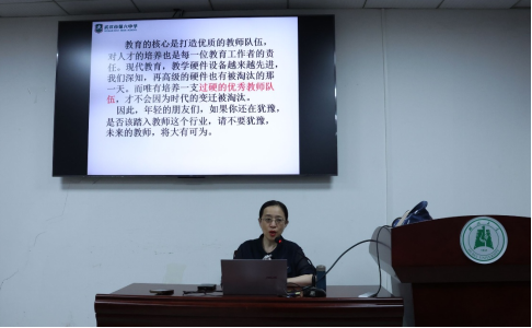 这次讲座的主题是“以英语教师视角解读四有好教师”。首先杨老师指出,“四有好教师”不仅是教师职业的基本标准,更是教师终身发展的方向指引;其次,杨老师针对“四有”即有理想信念、有道德情操、有扎实学识和有仁爱之心这四个方面分别进行了详细阐述,并结合杨老师从教的具体实例提供了一些宝贵的建议,包括如何处理同事、师生、教师和家长之间的关系。杨老师特别强调,在核心素养导向下,班主任工作仍是教师专业成长的重要平台。她指出,“班主任工作是道德情操的具体体现,是公司产品的重要表现”,并分享了多个班级管理及家校沟通的实际案例,为同学们提供了可借鉴的实践策略。