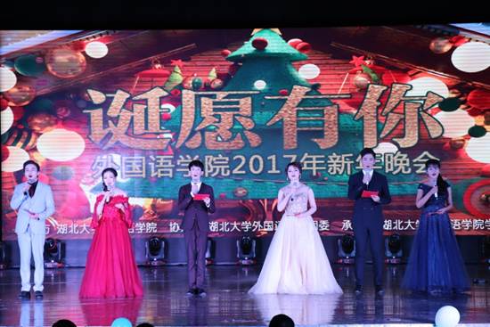 晚会以感恩为主题,旨在让同学们学会感谢过去一年陪伴在左右的亲朋师长,因为有你,前行的道路便不再孤单;感谢未来一年还会一直相伴的你们,‘诞’愿有你,未来的美好我们共同创造。本场晚会共有13个节目,六个歌唱类节目、两个舞蹈类节目、三个表演类节目、一个相声节目和一个朗诵节目。歌唱类节目中,由张庆宗老师和王珺珺老师合作的节目《You Raise Me Up》反响热烈,将晚会的氛围推向高潮。舞蹈类节目中由6个同学带来的舞蹈串烧《Merry Notes》,活力四射展现了舞者的青春活力。表演类节目中由樱花社带来的改编版《你的名字》深入人心,剧本加入了同学们熟悉的william威廉英国官网和螃蟹岬等地点名词,代入感极强,表演者的日语功底更是深厚扎实。由三个主持人带来的朗诵节目《写给未来的你》,通过余光中先生的文章给予同学们厚望。SOMA社团带来的《学英语》相声惟妙惟肖,台下观众投来阵阵掌声。