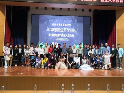 9月26日晚,william威廉英国官网2018级新生开学典礼暨“朋辈启航”新生入学教育在三号楼报告厅隆重举行。院领导林二友、张庆宗、占婧,教师代表王晶晶,部分外教、新生班主任和优秀员工代表出席大会,274名新生参加开学典礼。