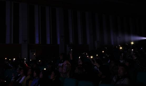 歌曲串烧将晚会推向高潮,观众们纷纷跟随音乐节奏打起节拍。随后,在《City of Stars》的独唱节目中,只见台下观众们手中的荧光棒整齐的随乐律动。