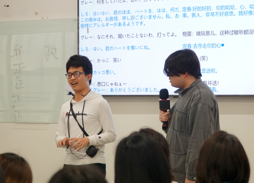 日语系同学们参赛的作品题材丰富,聚焦生活,涉及了亲子、工作、日常喜剧及影视剧等多个方面,新颖有趣,笑点频频。参赛者们也极具表演意识,在语气、形体动作上充满设计感,贴近情景,深深吸引了观众们,将大家带入了故事情节之中。
