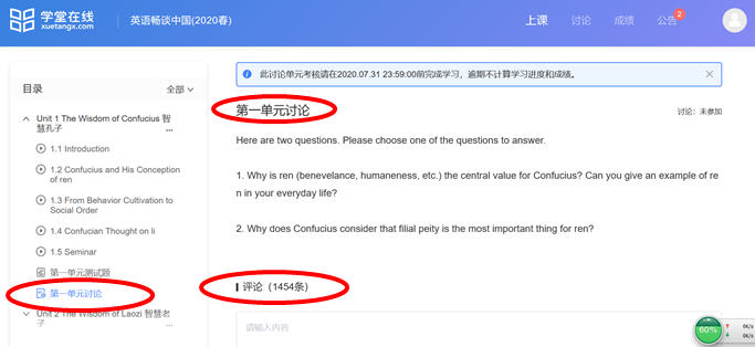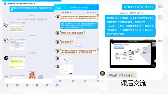 《英语畅谈中国文化》课程代表周赟赟老师总结如下:一是备课。全组提前两周确定教学计划,提前模拟在线教学;分工准备教学内容;明确任务清单目标,以产出为导向。二是线上课。发布每周任务清单,明确学习任务;慕课部分依托学堂在线平台,提前设置讨论内容;教材部分侧重原文及翻译、课后语言点练习、等;利用QQ群作业功能布置课后作业。三是当前面临的困难。部分员工由于网络原因,无法及时参与课堂教学;线上课与后期返校复课的衔接性;员工小组活动的操作性等。