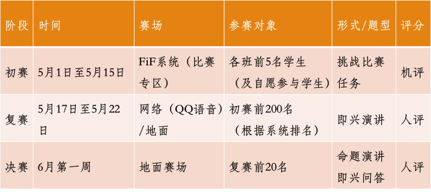 此外,本次比赛分为班级赛和个人赛。班级赛时间从4月1日至5月31日,