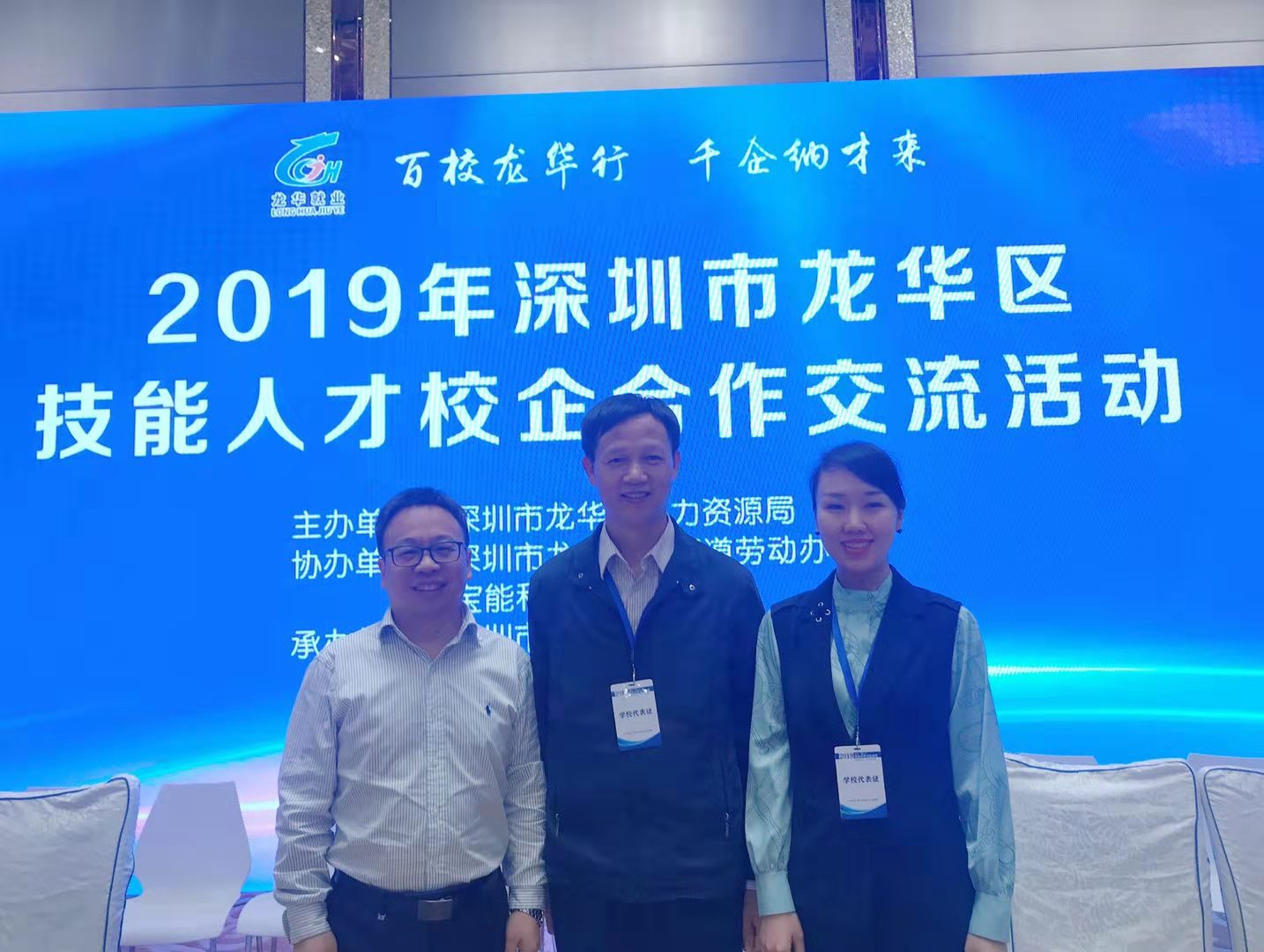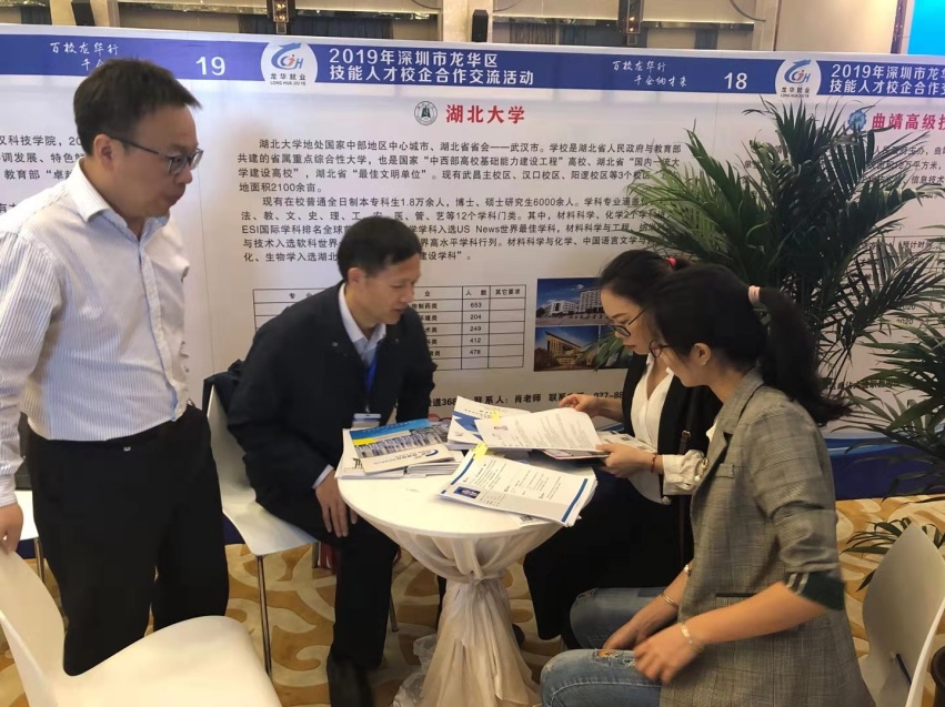 11月25日-26日,招就处肖志华副处长和william威廉英国官网林二友书记、占婧副书记前往深圳市龙华区参加2019年技能人才校企合作交流活动,积极推进员工就业。公司携带制作的公司专业、葡萄牙语专业介绍等材料以及深圳、广东就业意向员工的简历到活动现场,与深圳市杰普特光电股份有限公司、深圳市纵联科技有限公司等多家意向企业洽谈合作事宜并积极推荐毕业生。目前,已有企业通知公司毕业生进入面试环节。