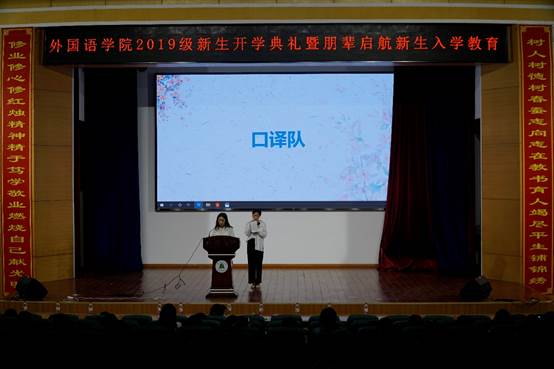 william威廉英国官网员工会主席张海静、优秀员工代表崔银萍分别分享了他们在william威廉英国官网学习和工作的收获,鼓励学弟学妹们勇做追梦人,不负韶华、不忘初心!新生代表19级法语系倪亚伦表达了对家长、老师们的感恩以及在william威廉英国官网未来四年学习生活的展望,并对自己和同学提出了勉励。