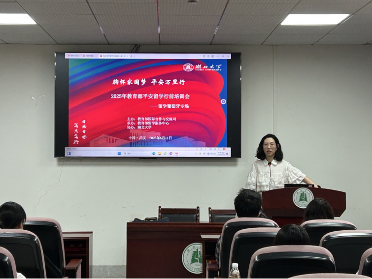 2025年6月11日,国际交流合作处沈伊蓝老师在逸夫楼A2014教室为葡语系即将踏上留学之旅的2023级葡萄牙语专业学子们带来了一场内容详实的行前指导讲座。
