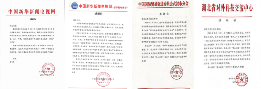 公司参与高端智库建设,撰写咨政报告10余篇被各级政府部门采纳;公司师生为国家地方重大外事活动、赛会提供高质量语言服务,如联合国大会、外交部湖北全球推介会、武汉军运会、北京冬奥会、杭州亚运会等,被新华网、光明网等媒体报道。